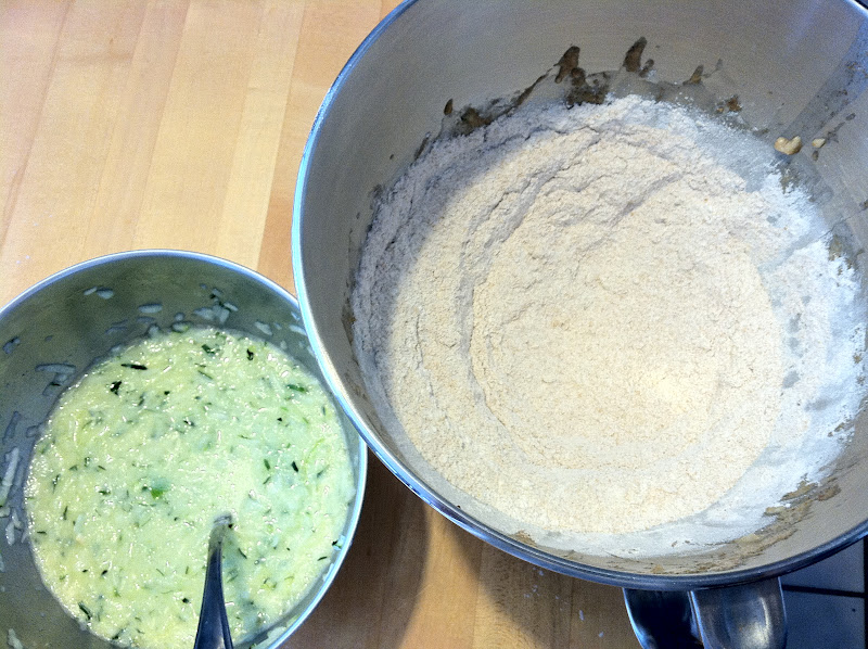 I have been making these delicious zucchini muffins for years. This recipe is an old Cooking Light recipe that I altered slightly. The whole wheat flour and zucchini makes them totally healthy right? {just forget the sugar :) } They are really easy to throw together, and freeze well too!